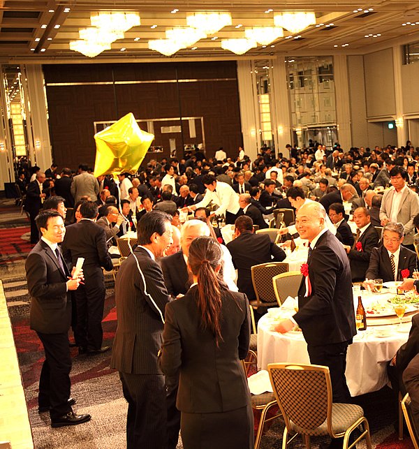 > 毎年、会の前夜には、都内の高級ホテルで、首相も出席して